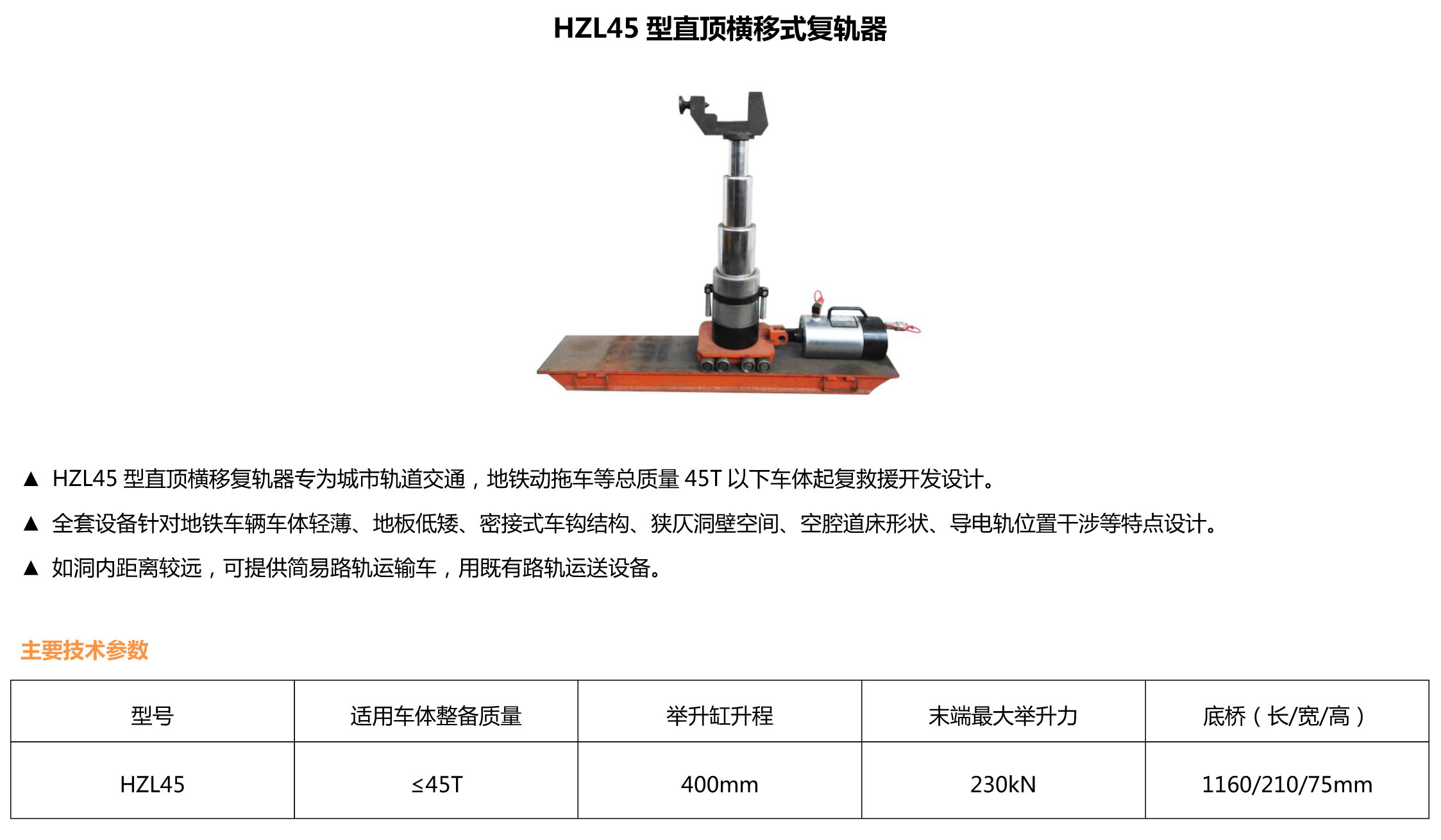 首頁 >> 產(chǎn)品中心 >> HZL45直頂橫移復(fù)軌器